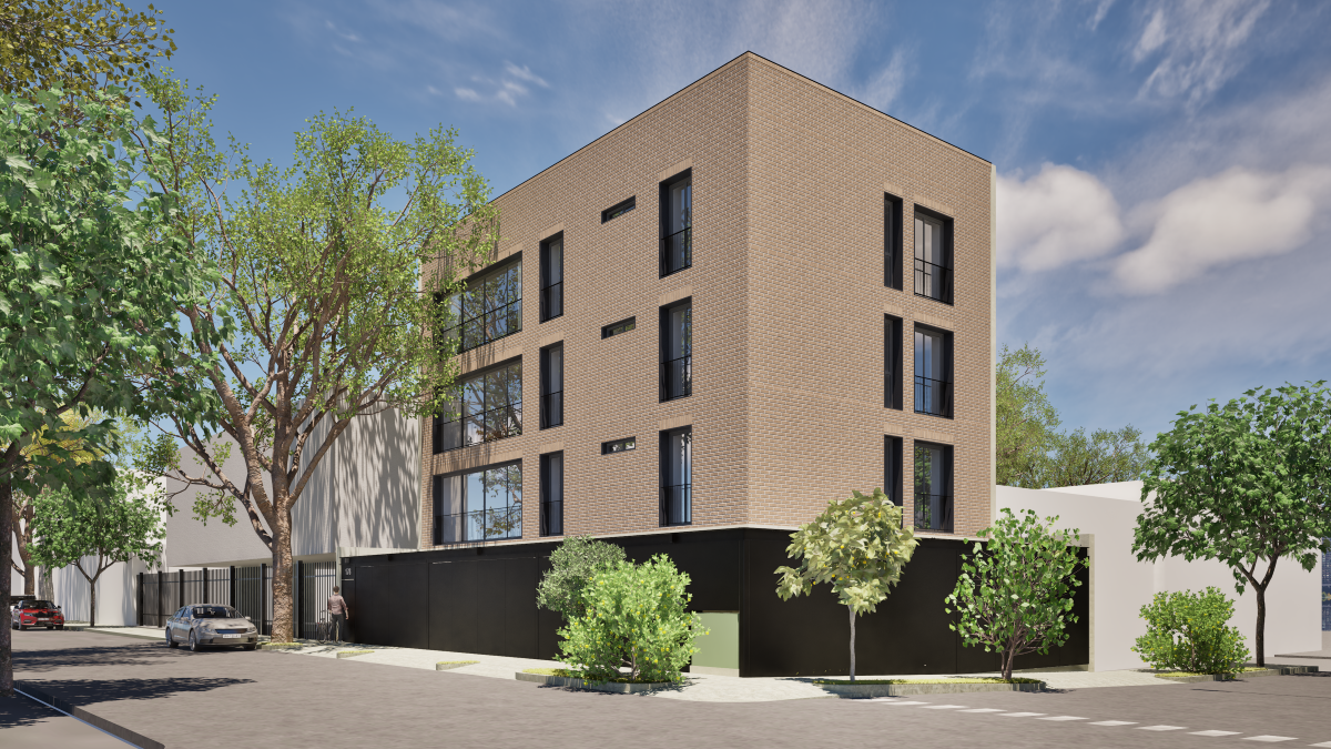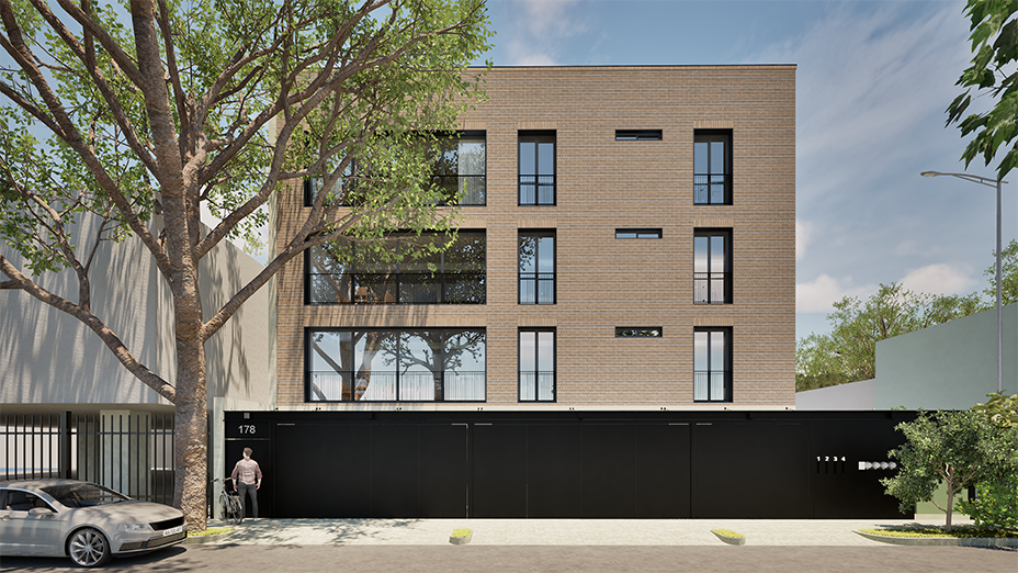 Proyecto de vivienda vertical en cuatro niveles, conformado por tres unidades habitacionales —una por nivel— y un nivel de estacionamiento a nivel de calle.